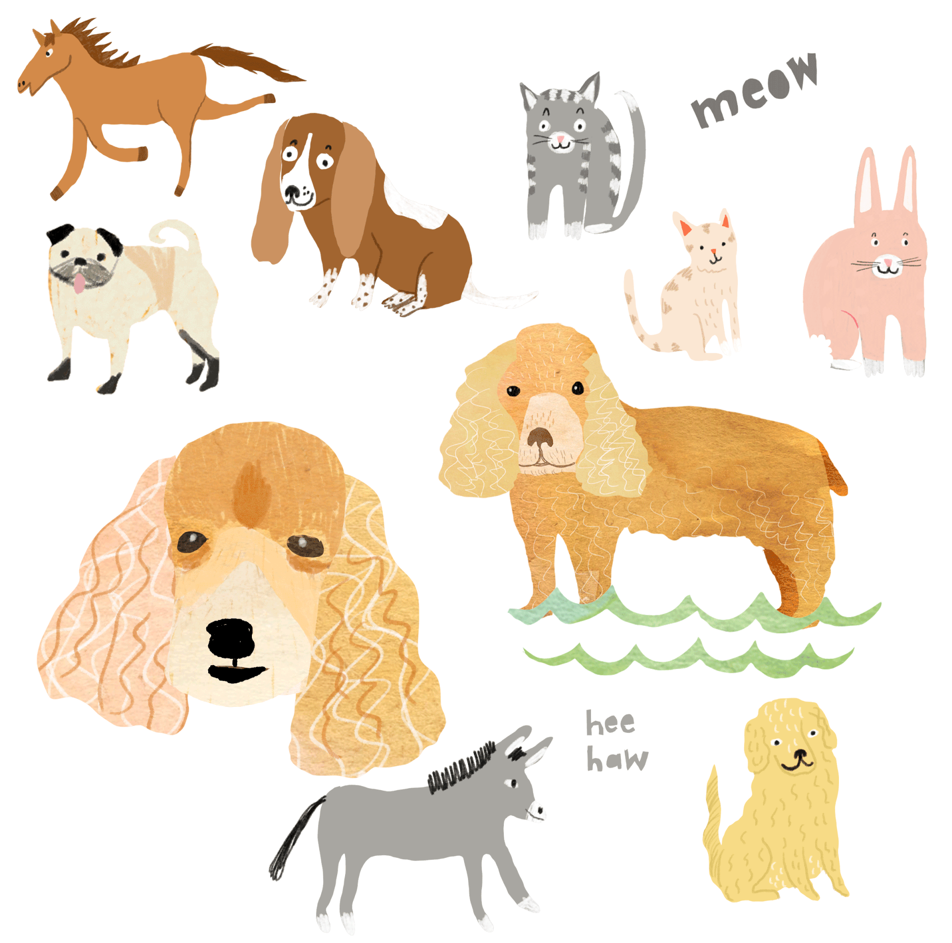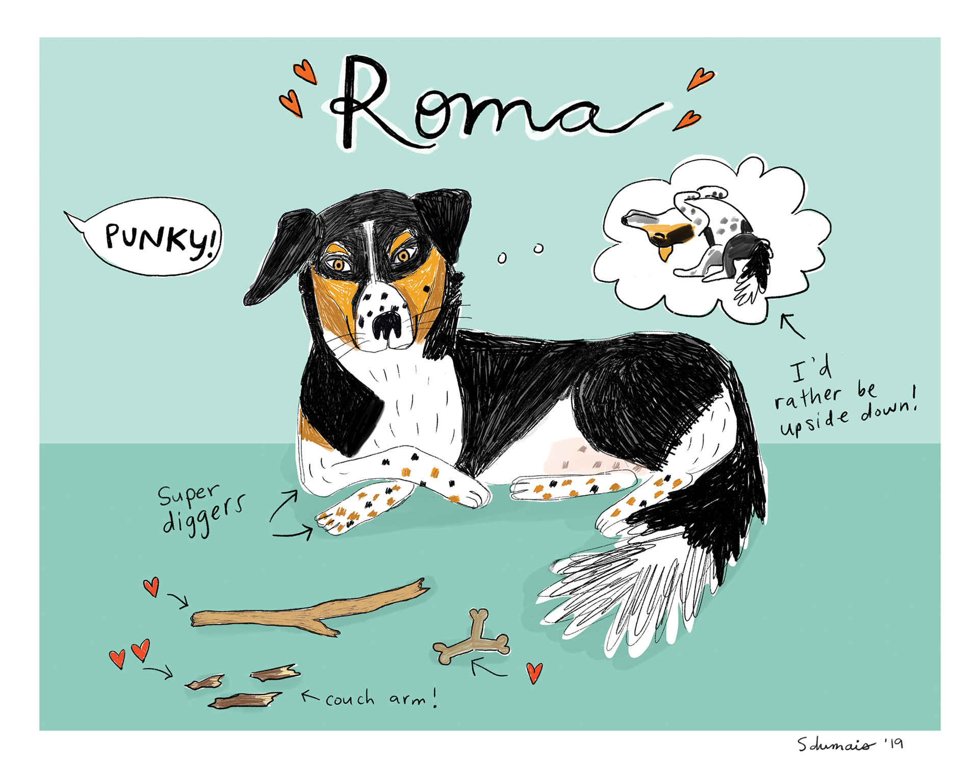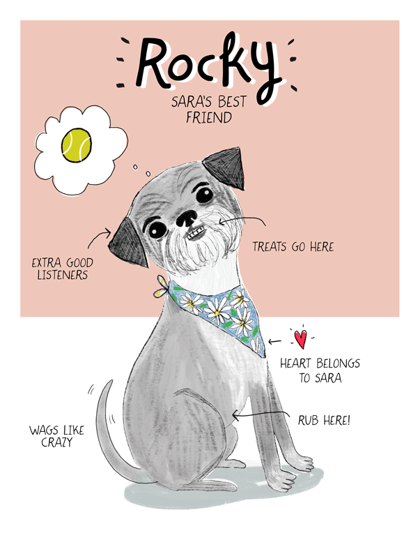 I love animals. I really love dogs and draw them all the time. I collaborate with